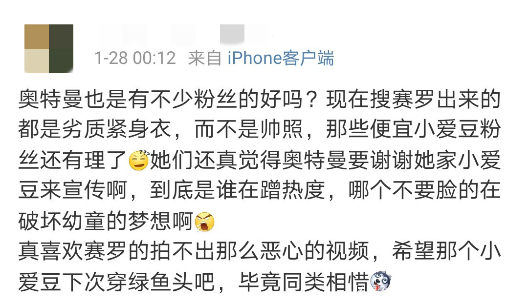 奧特曼的粉絲還質問,“這是新時代愛豆應該做的事情?”