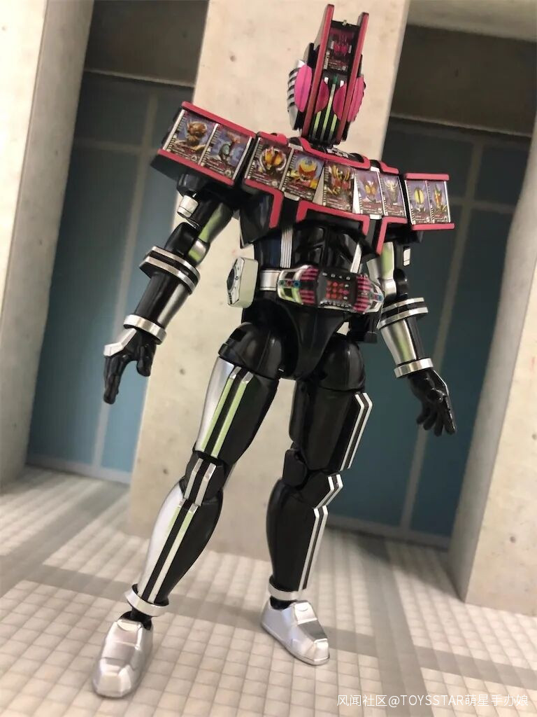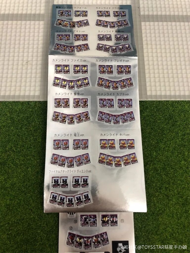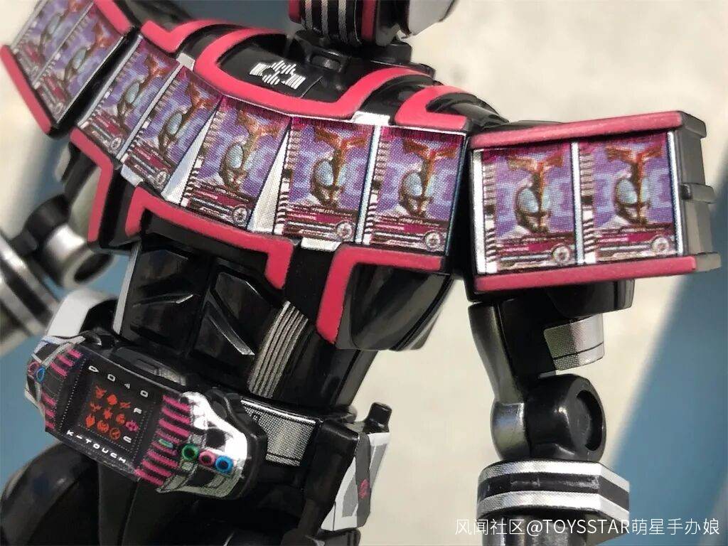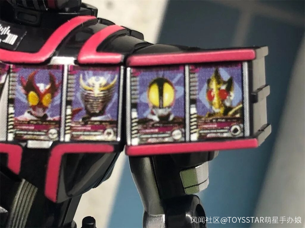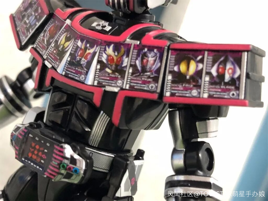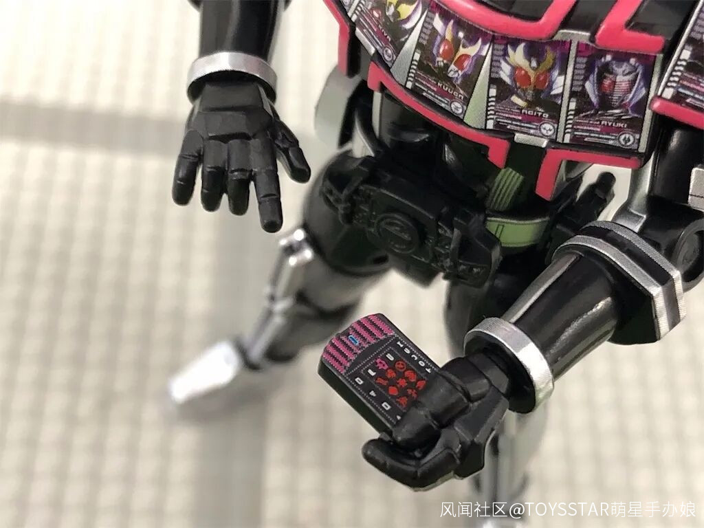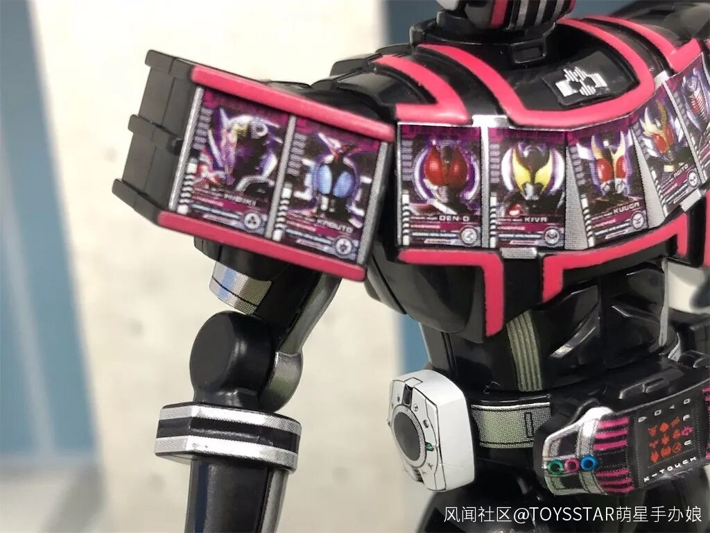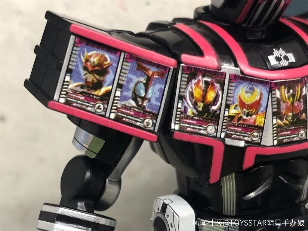 身上的騎士卡片採用了約7mm的超小尺寸貼紙,由於大小限制貼紙也是經過多次的調整,力求最好效果呈現平成傳奇假面騎士們的面貌與帝騎完全形態的細節。