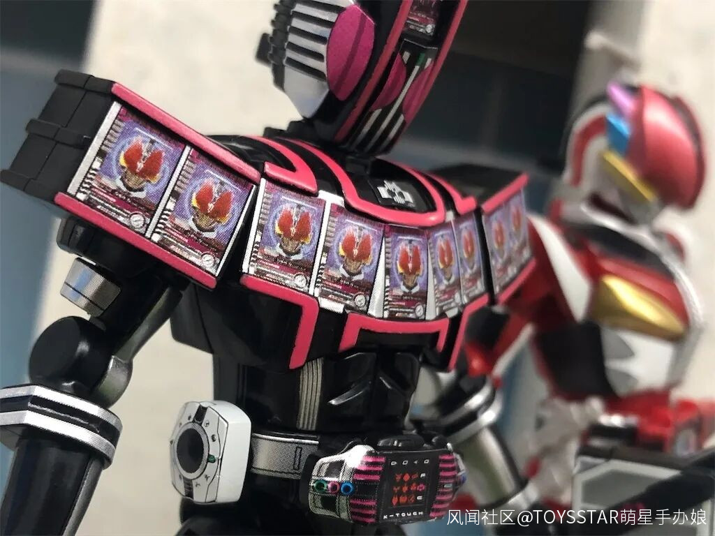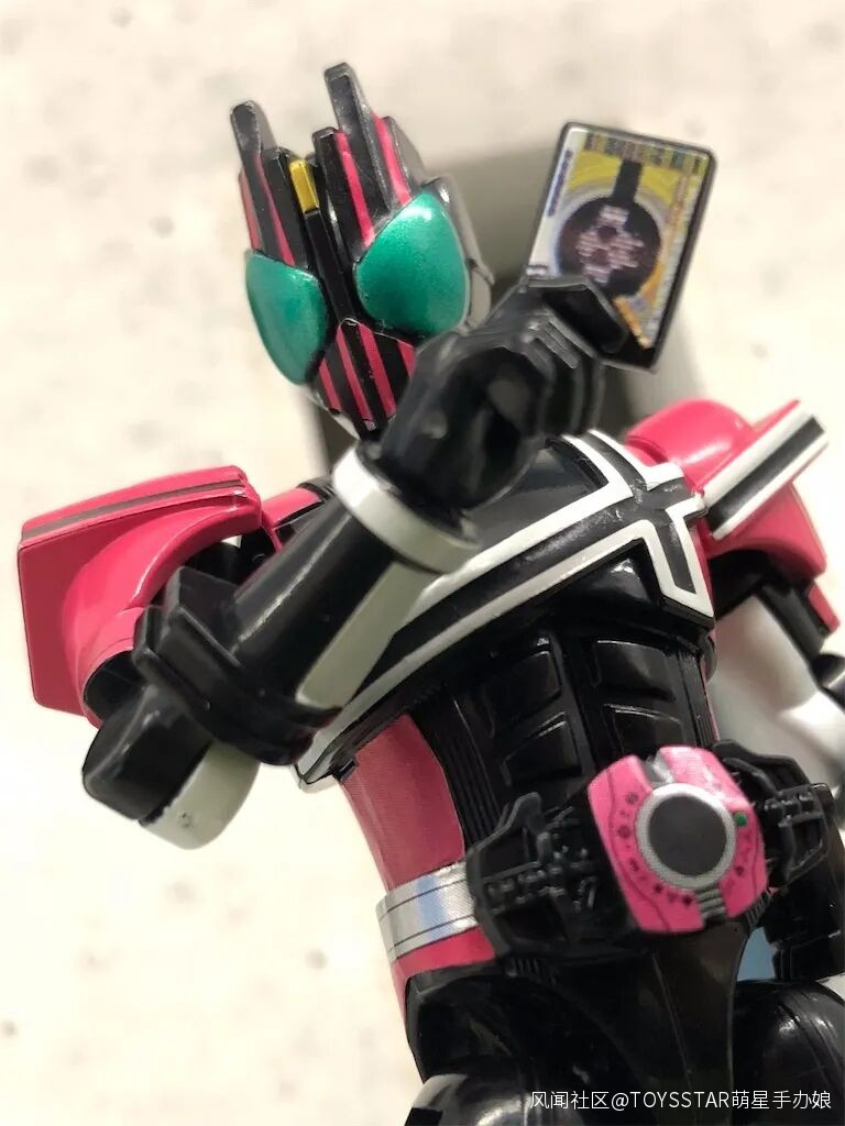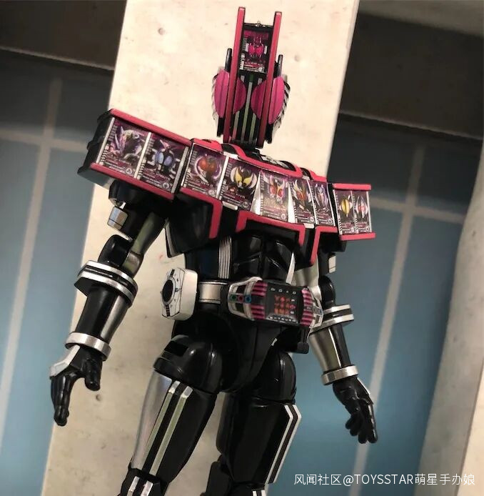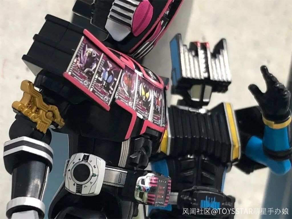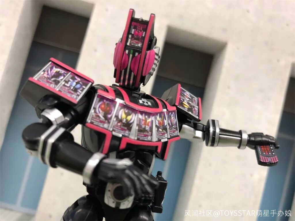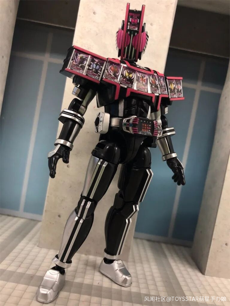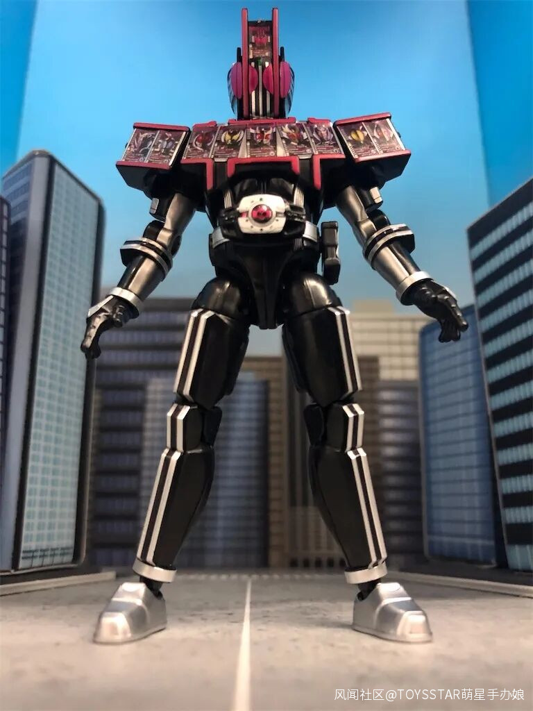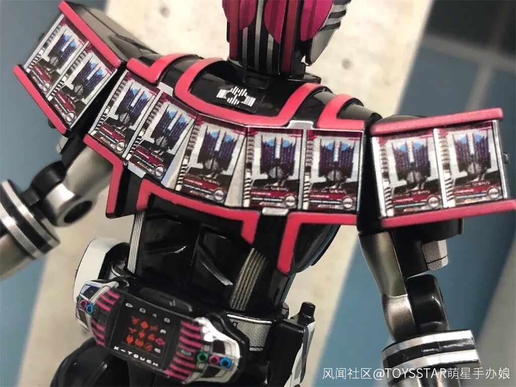 身上的騎士卡片採用了約7mm的超小尺寸貼紙,由於大小限制貼紙也是經過多次的調整,力求最好效果呈現平成傳奇假面騎士們的面貌與帝騎完全形態的細節。
