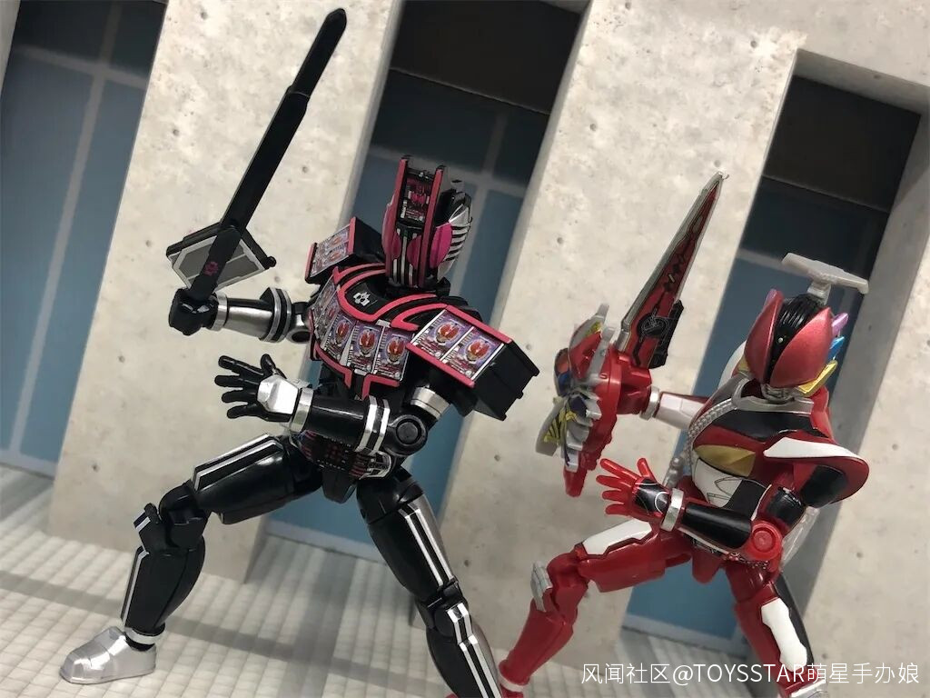 將安裝在腰帶扣上的帝騎驅動器別在腰側,接着把K觸屏安裝在腰帶扣上,變身成為完全形態!食玩裝動通過簡易的機構,還原了形態切換的樂趣