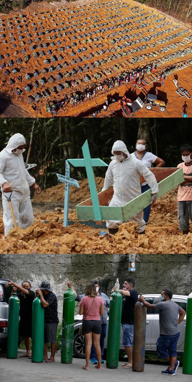 在去年的第一波疫情中超過2/3人口感染過新冠而被認為將成為全球第一實現“羣體免疫”的巴西亞馬遜州首府馬瑙斯,在近期由巴西變異病毒引發的的新一波疫情中仍舊傷亡慘重。當地公共衞生系統已告崩潰,醫院人滿為患,醫用氧氣供應已經完全跟不上需求,大量病患因缺氧窒息而亡,甚至連下葬都找不着足夠的人手抬棺。導致巴西政府急需疫苗緩解疫情和民眾急劇不滿的情緒。
