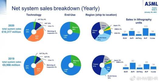 而ASML去年大陸佔份額18%,還是限制EUV光刻機的,否則估計突破30%都有可能,後續會大量被幹。
