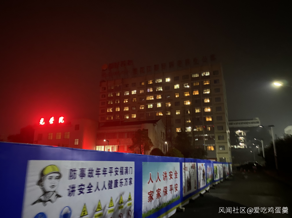 在這之前,丁麗華帶着女兒和我去都好養老院轉了轉。在離曾家坪半小時車程的縣城郊區,都好養老院仍然還在運轉。黑夜中,一棟和縣城環境格格不入的、嶄新的樓盤佇立着,窗口裏散射出明亮、温暖的燈光,三個紅色的大字立在樓頂,“光榮院”,前面是一家配套的“養老服務醫院”。後頭養老,前面醫療,這是丁麗華在農村裏難以見到的場景。