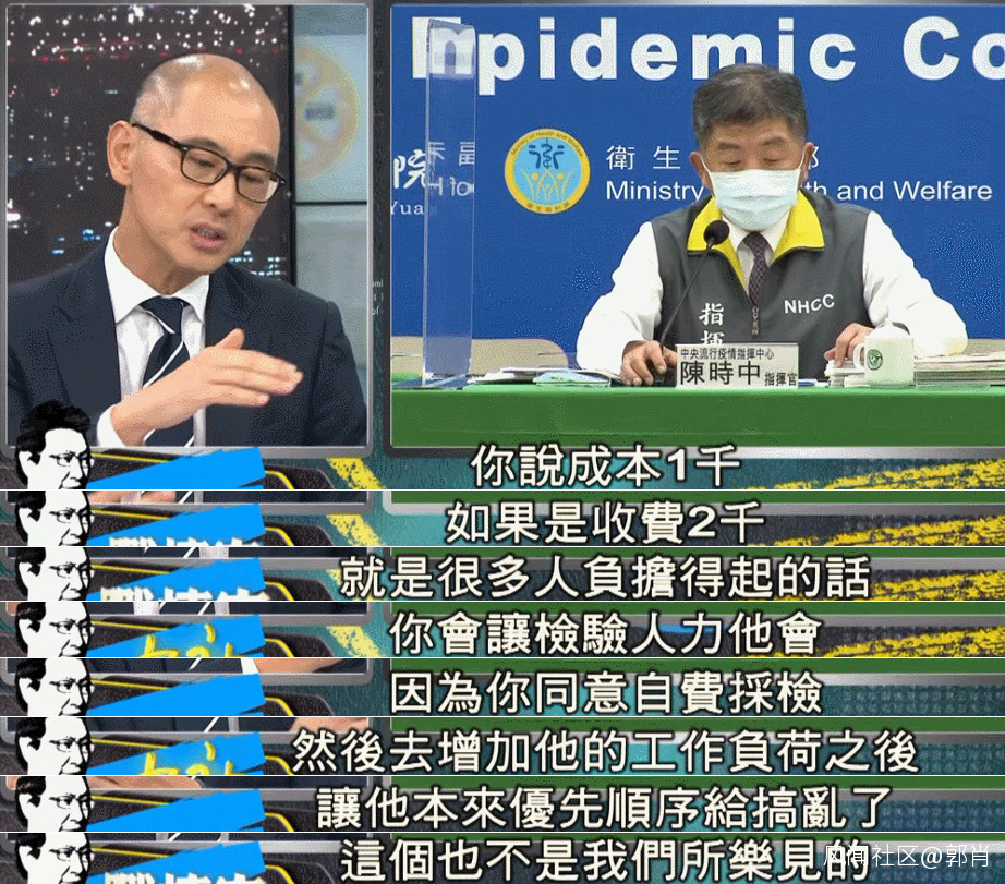面對該場面,一位名叫賈蔚的醫院副院長強行解釋稱,其實台灣的檢測隱藏成本有很多,不是大家以為的那種暴利,比如醫護人員穿的防護服價格也很高,“檢測有很多種,核酸檢測,抗原抗體檢測,台灣比人家貴10幾倍、20倍,那你也要看是什麼樣的檢測,核酸檢測需要最多的設備跟人力,大家認為很貴,成本只有1000多,但其實成本有很多隱藏成本,從採檢人員到檢體的儲存、傳送,傳送也有人員,每一個關卡都要防護服。”