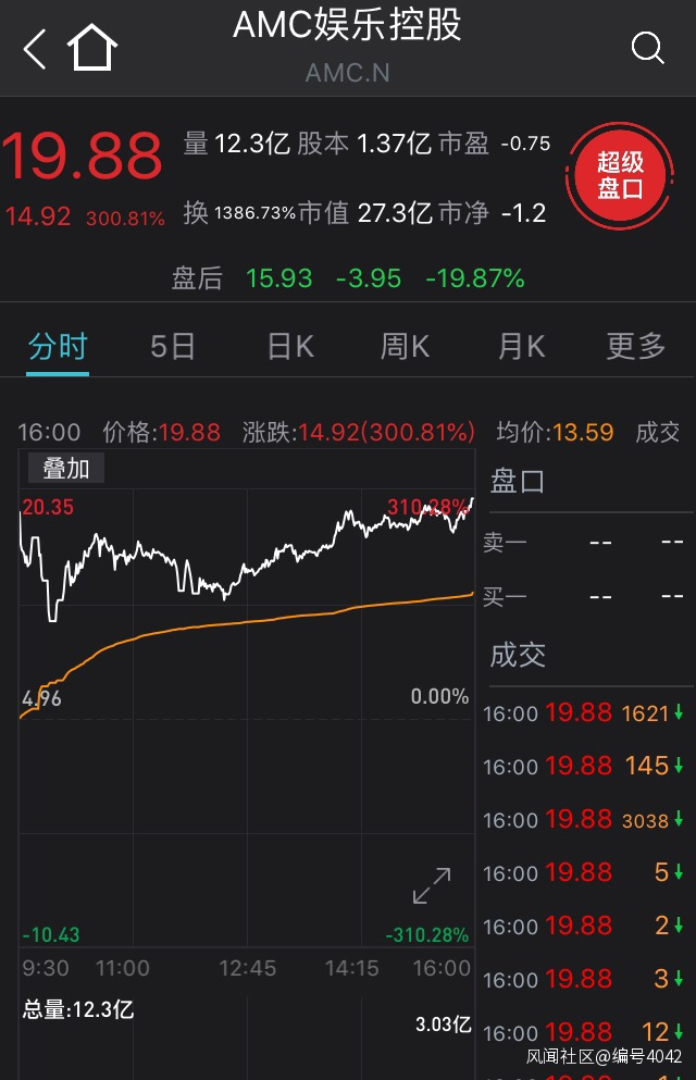影視院線股AMC盤中最高漲超310%,一度觸發交易熔斷,收漲超300.81%,股價創2018年10月以來的最高。公司稱已“按現行市場價格”完成增發6330萬股普通股計劃,募資3.05億美元。分析稱,除了逼空機構之外,AMC可以避免破產也激發起美股散户的抱團熱情。