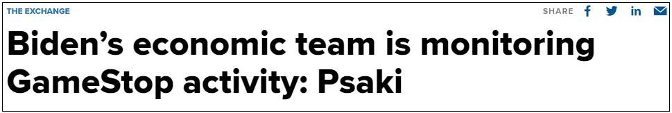美國白宮新聞發言人Psaki稱,美國財長耶倫和拜登的經濟團隊正在密切關注GameStop和其他股票遭大量做空的公司的活動。Psaki稱,遊戲驛站不尋常交易“很好地提醒了我們,股市並不是衡量我們經濟健康狀況的唯一標準。”