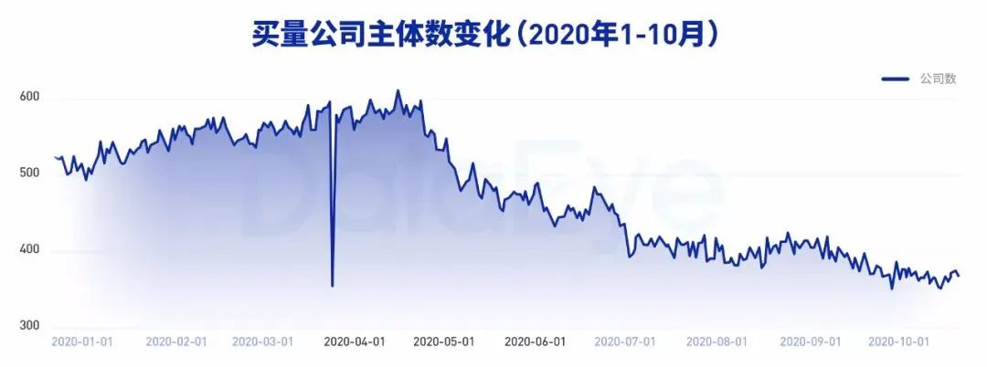 緊隨其後,欠款的情況開始發生。年中有圈內人士告訴葡萄君,有7-8家代投廠商被欠了7000萬-8000萬,甚至某家曾經的頭部傳奇公司也是欠款大户,市場哀鴻遍野。據DataEye數據研究院統計,截至5月下旬,市場上的買量公司主體從500多家驟減到了350家,且持續低迷了近4個月。