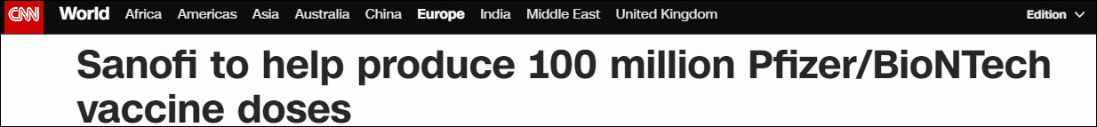 法國製藥商賽諾菲將幫助生產逾億劑輝瑞疫苗 圖源美國有線電視新聞網