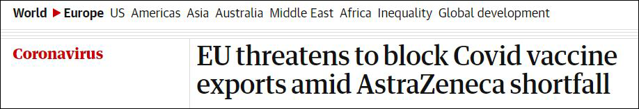 阿斯利康疫苗供應短缺,歐盟威脅阻止新冠疫苗出口 圖源衞報