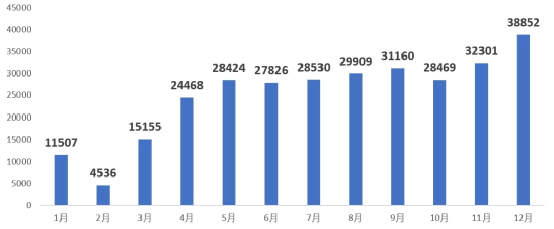 2020年一年上海消化了30萬套二手房,臨近年底時單月成交量頻頻觸達3萬套,12月甚至快達到4萬套。只有在疫情最嚴重的2月,市場成交低迷,只有4000多套。