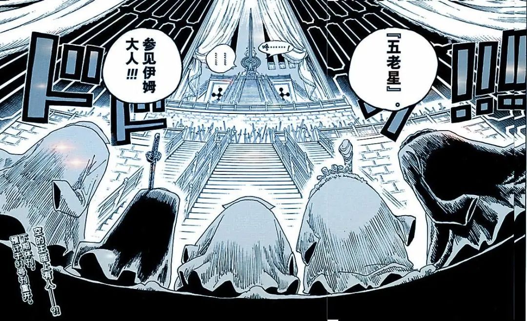 那麼最高權力者是誰呢,是天龍人依姆,這有點像大明王朝裏的嘉靖,他是實際的權利掌控者,但卻很少直接參與朝政,具體行政權利交給五老星(內閣)去行使。它非常神秘,有着修長的身材(為啥讓我想起來痞老闆),只有極少數的人才知道他的存在。他是舊秩序的至高存在,要抹除掉破壞舊秩序隱患的草帽、白星和黑鬍子。