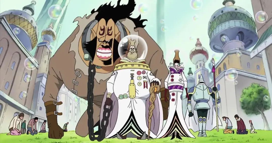 天龍人無疑是海賊世界裏的統治階級,世界政府極力地維護着天龍人也就是世界貴族們的權利,這裏的天龍人可以參照八旗子弟,但實際權利還要遠高於八旗子弟。他們天生高人一等,生下來唯一的任務就是吃喝玩樂,朝廷命官見到他們都得恭恭敬敬,海軍大將時刻為其護航,即使是嫉惡如仇的卡普們,對天龍人只是過過嘴癮罵罵。天龍人魚肉百姓,依然能保有主宰世界,他的統治基礎又是什麼?除了掌握歷史和合法性,當然還得有鎮壓性的國家機器,問題是,諸如暴力機器海軍,也未必能擺平四皇,筆者猜測,可能還因為掌握了一種古代兵器,足以威懾世界。