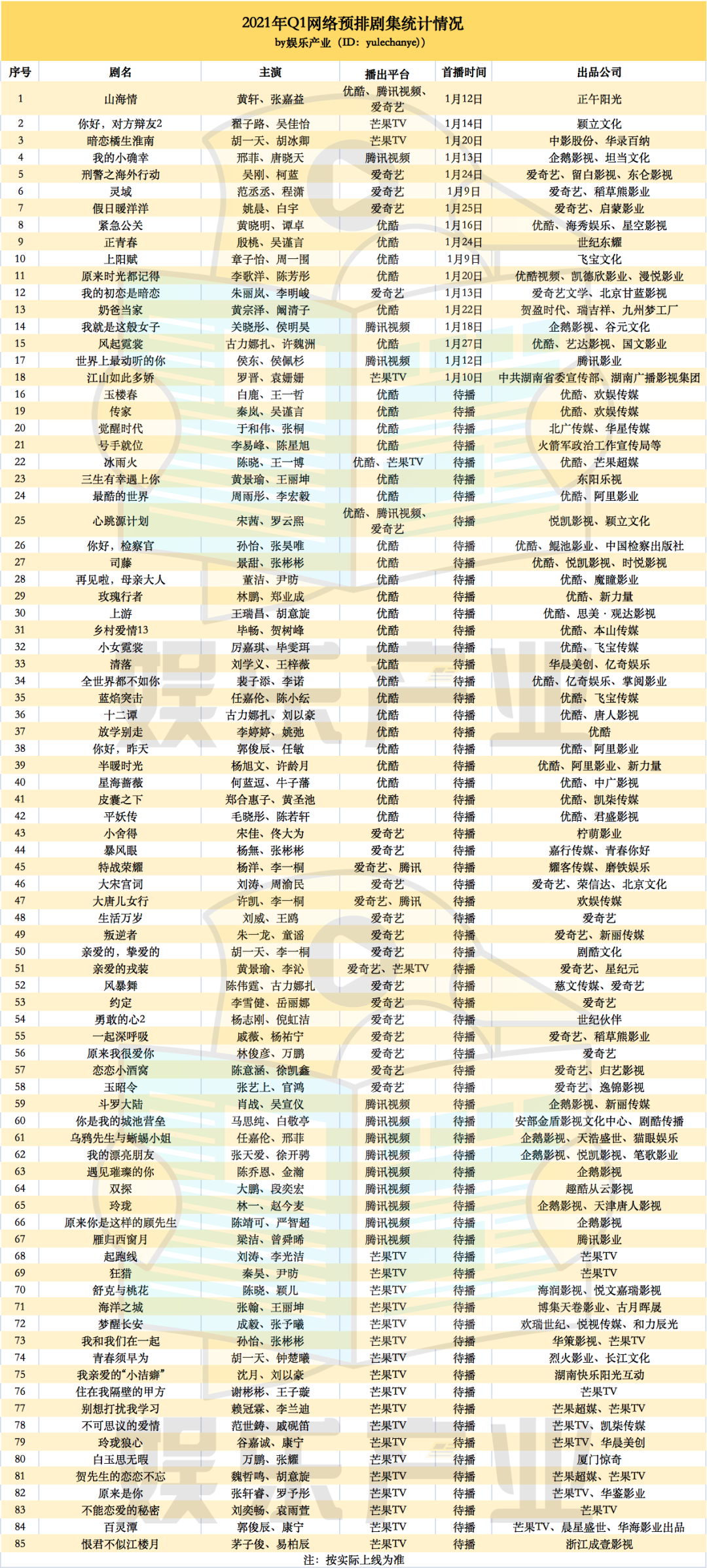 至於平台方面,誰將領跑劇集市場?爆款劇又會花落誰家?娛樂產業**(ID:yulechanye )**將持續觀察。