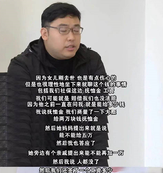 這樣的要求,公司難以接受,他們得知,女孩的父親曾在調解時説過,有二十幾萬是要拿去給兒子買房子的。