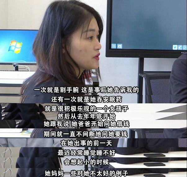 家屬一直在説女兒曾經和弟弟通過電話,説公司上了一個新項目,説覺得壓力大,他們認為,女兒是因為公司給的壓力太大才出的事。