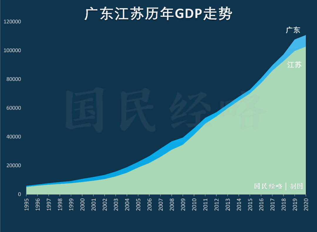 2020年,廣東GDP為11.07萬億,江蘇10.27萬億,兩個大省雙雙破10萬億。
