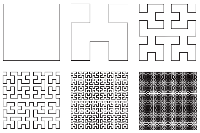 1891年,戴維·希爾伯特描述了一條令人注目的分形曲線,通過一組簡單的指令,就能使一條可能無限長的線填充任何有限的空間