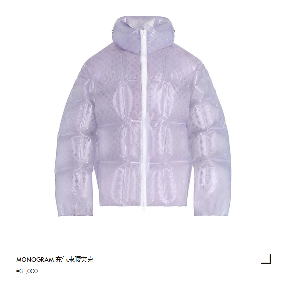 據LV官網顯示,品牌這次一口氣上架了三款充氣衣,其中,兩款充氣背心售價為26700元,一款充氣束腰夾克售價為31000元。