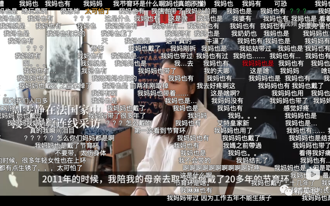 周雯靜在B站分享陪母親去取環的經歷後,被彈幕的評論刷屏,超過4000在視頻中評論他們的母親也佩戴了節育環
