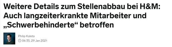 一份名為“RTL”的內部報告的流出使得施密茨女士的描述更具真實性。根據該報告,H&M的解僱浪潮一直正在進行中——自2018年以來,該公司已經在德國裁員3000人。根據這一點,可以判斷團隊領導正在鼓勵員工離開公司,並接受商定補償。很多僱員擔心,如果他們不接受公司的這份離職協議,領導們便會在日常公司運作中想法設法地迫使他們離開,這樣的話甚至連補償也沒有。