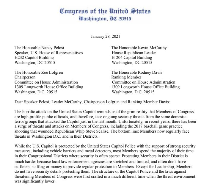 另外一方面,據美國哥倫比亞廣播公司(CBS)報道,在佩洛西發表上述言論之前,有約30位國會議員向佩洛西本人和眾議院共和黨領袖凱文·麥卡錫(Kevin McCarthy)寫信,稱他們正在成為暴力傷害行為的“目標”。議員們要求“靈活地使用資金”,對他們加強保護。