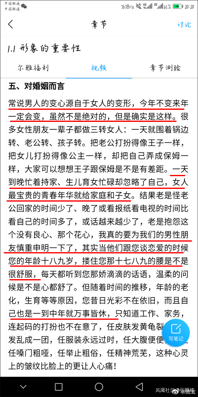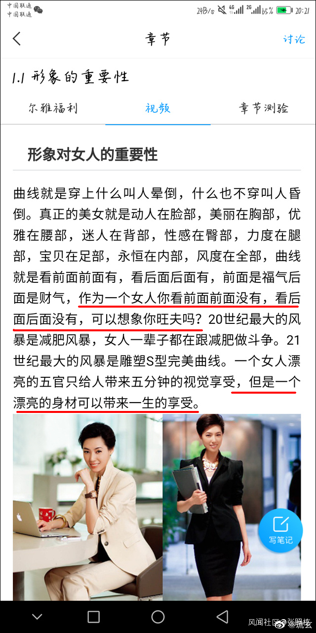 至於該網友爆料的“女人要旺夫”等內容,出現在第一章“女士個人風格定位”第一節“形象的重要性”的課程內容文字介紹中。