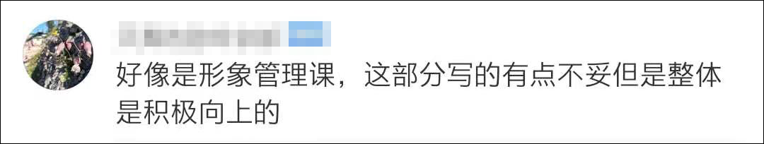 不過,若因這部分內容的表述不當,就否定這門形象管理課的其他大部分合理有益的課程,並且給其冠上“旺夫課”、“女德課”的帽子,未免有“株連”之嫌,有失公允。
