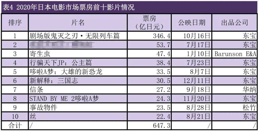 2020年日本影市屬於《鬼滅之刃:無限列車篇》。