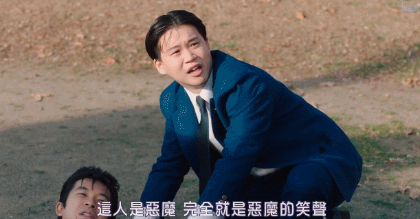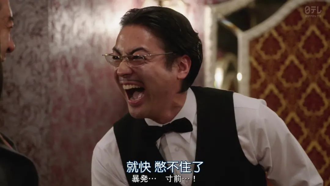電影中看到死對頭今井受挫,先是露出鬼畜笑容的卑鄙顏藝。