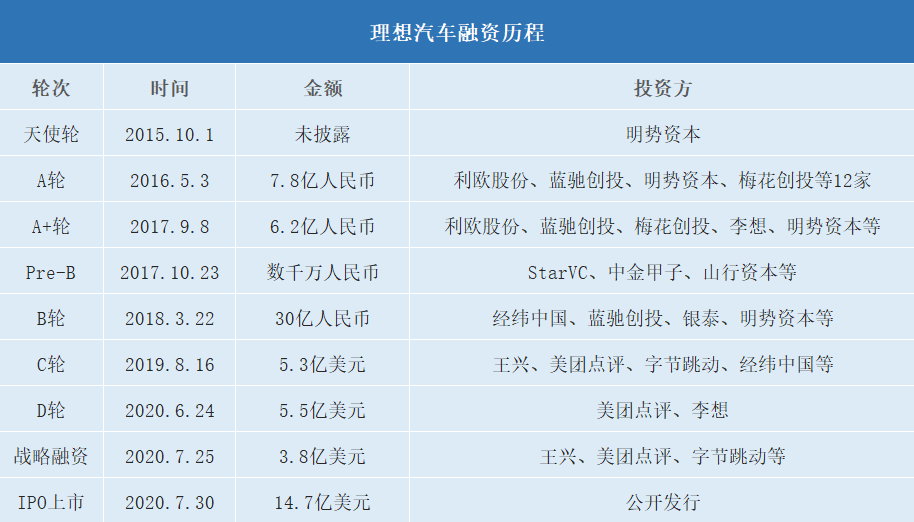 2019年12月,理想汽車完成C輪5.5億美元融資,僅王興個人就領投超過2.34億美元,美團龍珠資本參投2500萬美元。D輪融資時,美團繼續加註,領投5億美元。