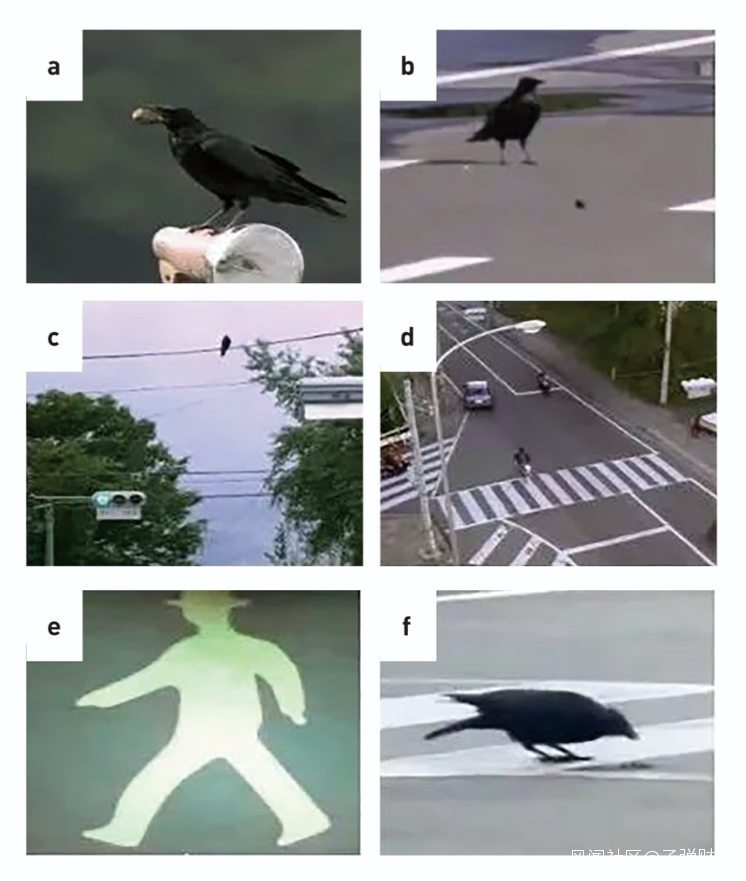 還有一種是“烏鴉範式”,烏鴉找到核桃之後,會把核桃扔在路上,讓車去壓,壓碎了再吃。但是因為路上車太多,烏鴉吃不到核桃,於是烏鴉把核桃扔到斑馬線上,因為這裏有紅綠燈,紅燈亮時車都停住了,它就可以去吃。