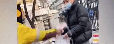 視頻中,外賣小哥按訂單備註照做,將奶茶打開後潑向了該男子。潑完之後,外賣小哥似乎有點害怕,趕緊將訂單備註給被潑男子看。