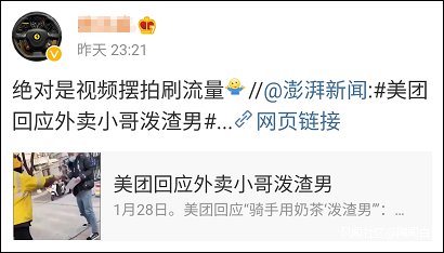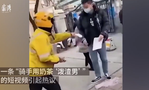 外賣小哥用奶茶潑渣男?美團回應了,但這真不是擺拍?_風聞