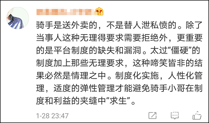 對此,美團於28日做出回應,稱訂單屬實,騎手按備註照做,雙方已和解。不過,這一回應仍未能消除網友的質疑聲。