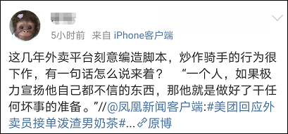 另有網友表示“騎手用奶茶潑渣男”不可信。
