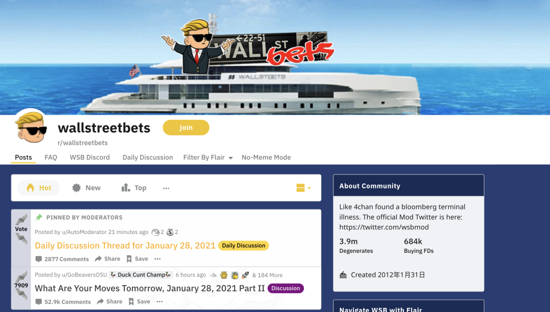 這次策動羣眾的發源地是Reddit,一個類似貼吧的互聯網平台。其中有一個叫Wallstreetbets(華爾街賭場)的論壇。