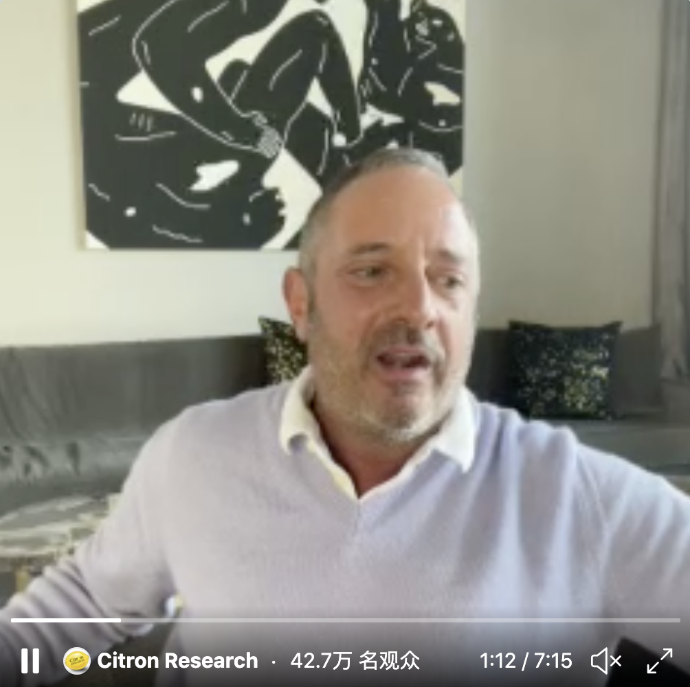 香櫞掌門人Andrew Left錄了一個視頻開懟,説自己有五大理由看空,還説“從未見過如此憤怒地意見交換”。