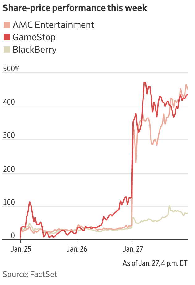 除了GME以外,電影院線AMC(沒錯,就是王健林曾經攪合的那個),黑莓,諾基亞等公司,全部都在散户推高的行列之中。