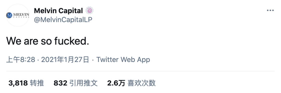 而梅爾文對沖基金(Melvin Capital)就沒這麼硬氣了。