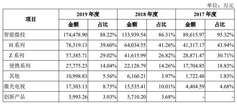 登陸資本市場的極米科技,擁有了更大的想象空間,但從長線的業務增長來看,極米科技仍然面臨着兩大挑戰:營收結構單一,科創成色不足。