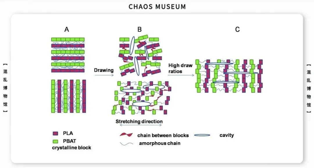 其次,聚乳酸的結構韌性差,比強度(材料強度與材料密度的比值)低。相同質量下的普通聚乳酸承重能力遠遠低於聚乙烯。造成這種現象的原因,目前有幾個主流的分析方向。像結晶缺陷和形變位阻等等。如果想要深入理解在分子層面的聚合物彈性,那就是另一個故事了。