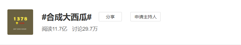這款小遊戲於1月22日上線,截至1月28日,#合成大西瓜#微博話題目前累計閲讀數11.7億,討論29.7萬。開年現象級遊戲,非大西瓜莫屬。