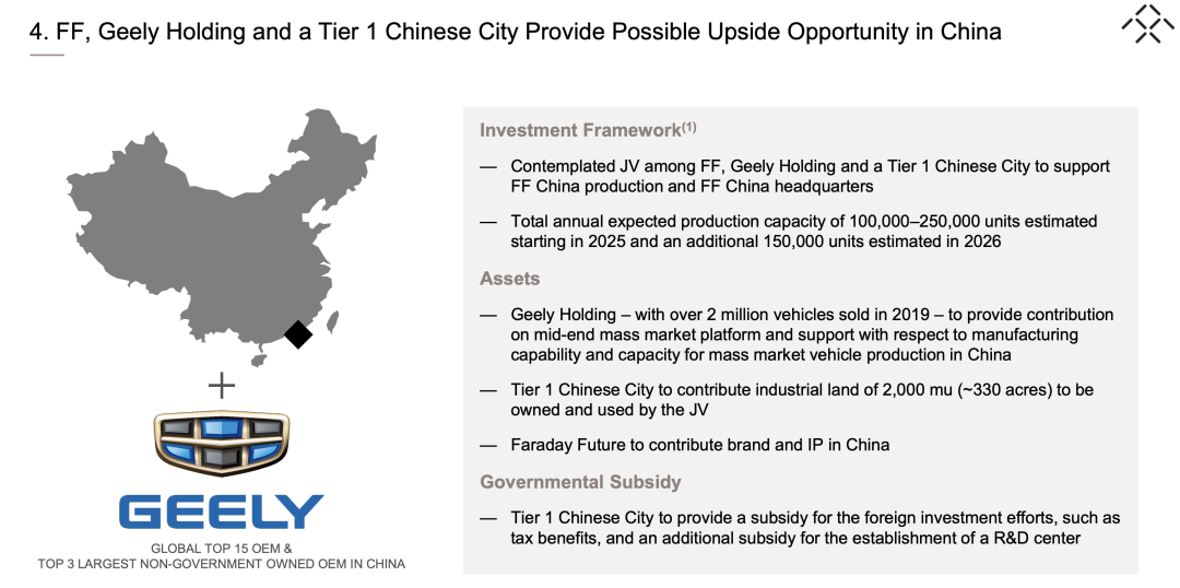 而在這張PPT中,FF明確指出會與中國排名前三的民營車企合作。