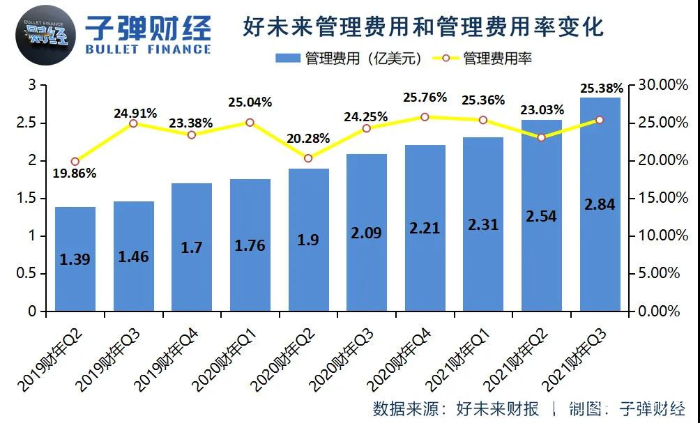 **不過,從目前來看,俞敏洪對新東方管理層的“糾偏”收效並不明顯。**根據新東方最新財報,新東方的管理費用達到3.33億美元,佔總營收的比例高達37.5%,超過其32.9%的平均管理費用率。