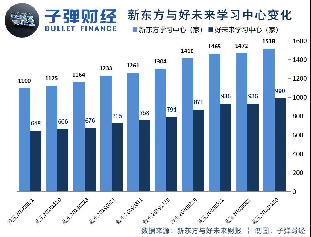 一直以來,新東方更傾向於線下業務擴張。根據新東方與好未來往期財報,在過去9個季度裏,新東方學習中心淨增418家,平均淨增46家/季,而好未來的這組數據分別為342家,38家/季。不難發現,新東方每個季度要比好未來多增加8家學習中心。