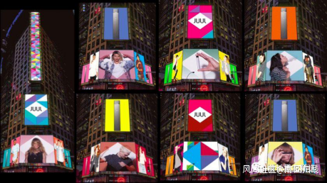 但JUUl宣傳海報呢?JUUL曾在時代廣場推出了覆蓋12個單元廣告牌的户外展示廣告,大家隨意感受一下: