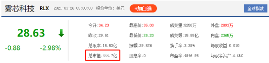 重新恢復交易後,盤中股價最高漲幅達158%,收盤漲145.9%,市值達到458億美元,近3000億人民幣。