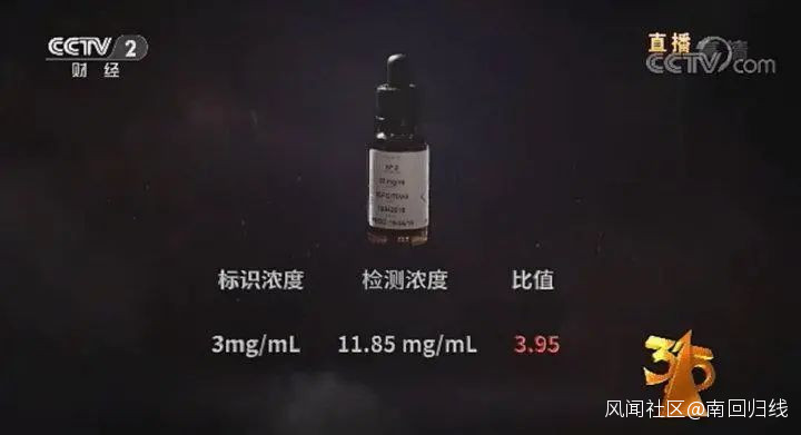還有的虛標尼古丁含量,標識濃度為3mg每毫升,實際檢測濃度卻高達11.85mg每毫升。