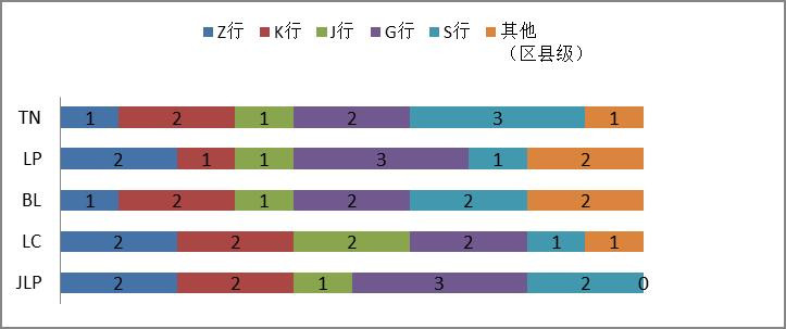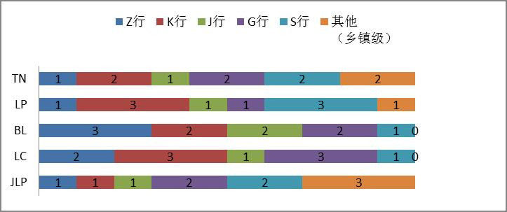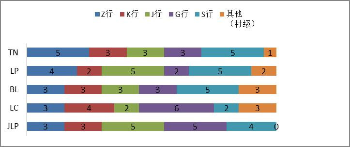 (二)扶貧行動印象的認知排序(以當地品牌排名前五的Z行、K行、J行、G行、S行為主要代表;行動第一印象排序)
