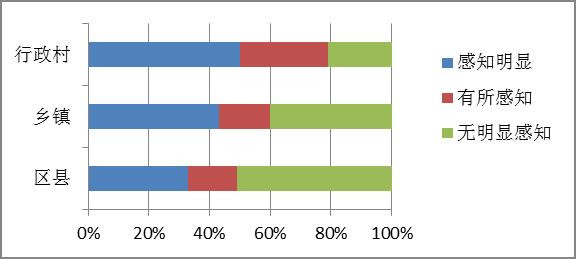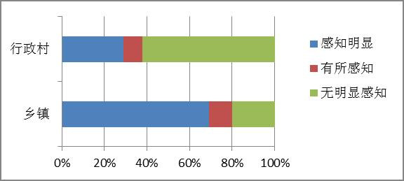 城市居民對鄉鎮級在扶貧過程中出現的變化認知明顯,但對村級出現的變化感知不突出。